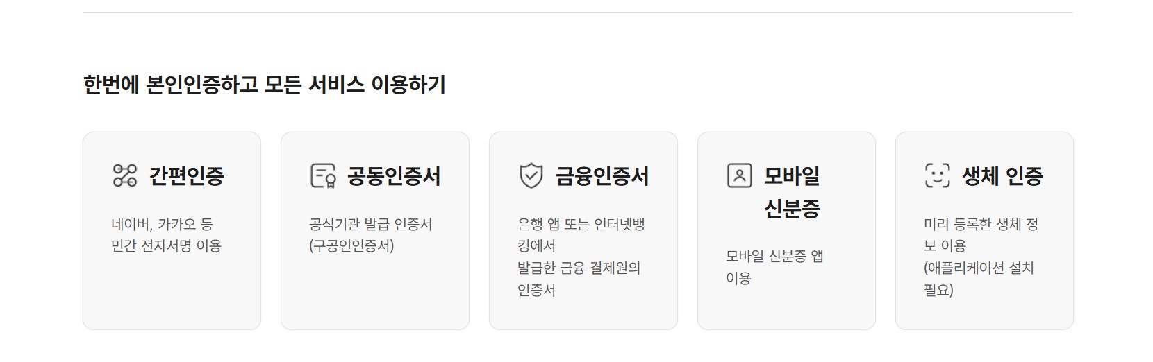 • 간편 인증 (카카오, PASS, 삼성패스 등)